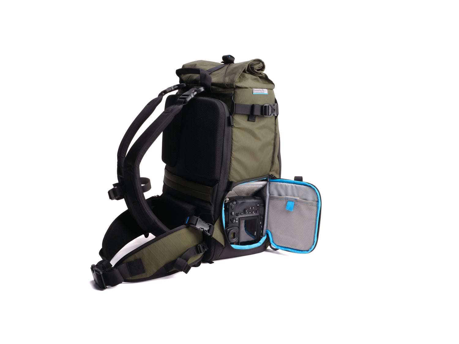 An expandable roll-top adds up to 5L of extra capacity for daily essentials or travel gear. Secured with Fidlock™ magnetic buckle, it’s built to hold a jacket, drone, or water bottle — everything you need beyond your camera setup.