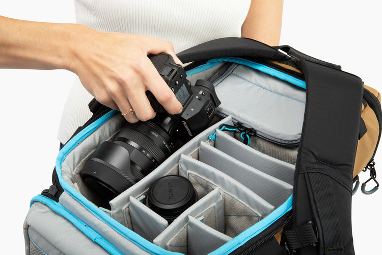 X-PAC® VX-21 by Dimension Polyant is the most light-weight and durable fabric ever for ultimate protection from the elements. We were the first to implement this material into camera bag design.