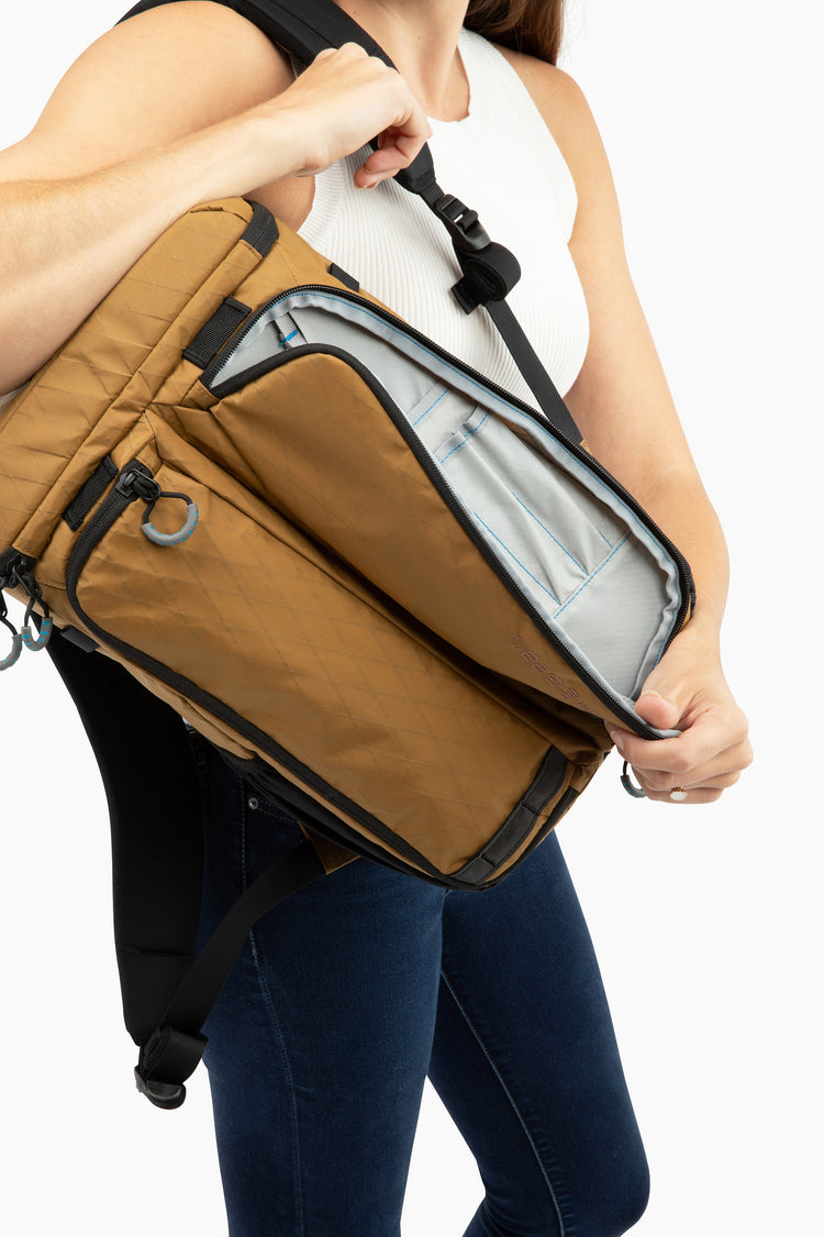 Made with weather-resistant X-Pac™, premium YKK zippers, and durable hardware — SR buckles plus a secure push-tab closure on the iPad compartment.